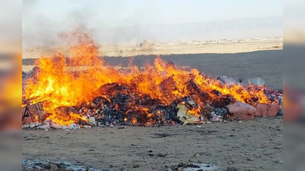 طالبان محموله بزرگی از داروهای قاچاق را در مرز با پاکستان آتش زد